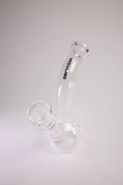 Die Mini-Bong ist nicht nur kompakt, sondern auch äußerst robust, dank ihrer hochwertigen Verarbeitung und einer Wandstärke von etwa 2,5 mm. Das schwarze Highline Logo auf der Säule verleiht ihr eine elegante Note und unterstreicht ihren exklusiven Charakter.